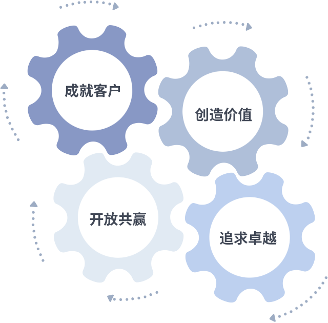 成就客户是一切决策的出发点,创造价值是衡量所有工作的标准,追求卓越是人生就是博·尊龙z6做事做人的态度,开放共赢是人生就是博·尊龙z6的格局也是最终的结果。价值观的齿轮环环相扣,推动着组织里的每个人不断向前。